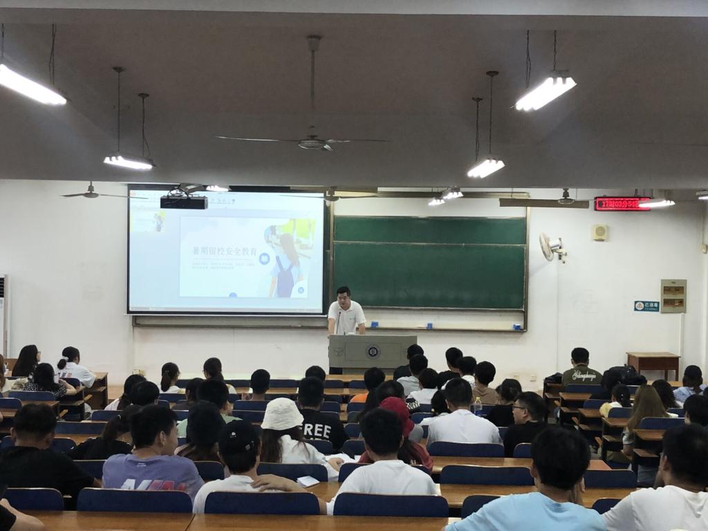 胡晓老师主要围绕金融安全、财产安全、宿舍安全、饮食安全等对18级学生开展了教育,提醒同学们要注意人身财产安全,树立安全观念,提高防范意识。对于暑期留校同学,一定要严格遵守留校相关规定,坚持日报平安,诫学生注意留校期间寝室用电消防安全,避免出现消防责任事故。曾玉竹老师提心同学们离校前要检查好寝室安全,关好门窗、关闭电源,带好自身证件和贵重财物,回家途中要注意交通安全,不乘坐无牌、无证等三无车辆;暑假期间预防溺水,不到乡村野外的河流沟渠中游泳;鼓励同学们积极参与暑期社会实践,并对社会实践过程中的其它事项做了具体说明。