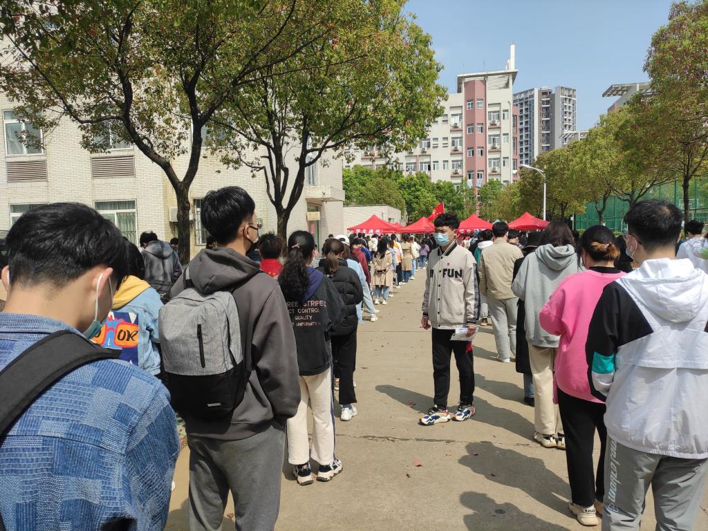 3月24日一大早,学院收到了上级全员核酸检测的紧急通知,需要1小时内安排好核酸检测的秩序维护志愿者,并迅速到达指定场地开展核酸检测服务工作。时间紧迫,低年级同学课业较满,毕业班同学忙于毕业设计和研究生复试,均无法满足长时间的志愿服务活动。学院党委迅速行动、广泛动员,各学生支部积极参与,火速组建了williamhill党员突击队,高分子11902班的刘昊冉自告奋勇,自荐担任突击队队长,主动扛起了突击队队旗,冲锋在前。